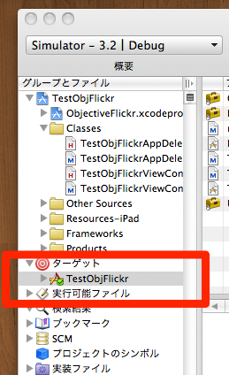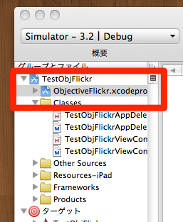 1.ObjectiveFlickr.xcodeprojを自分のプロジェクトに追加。Drag&Dropでオッケ