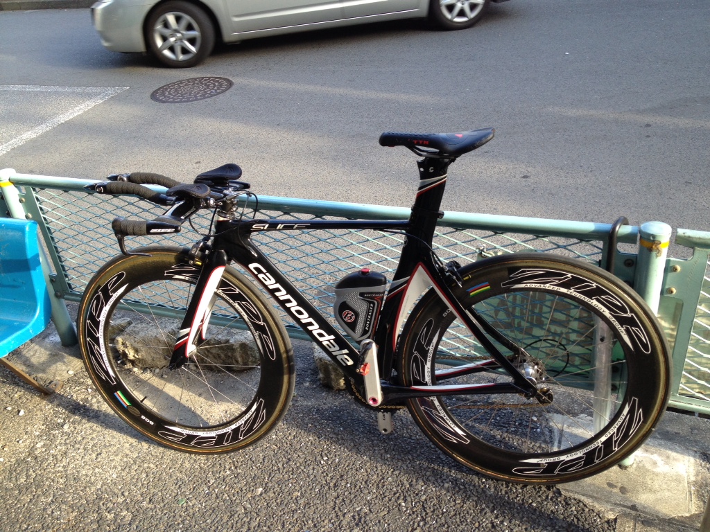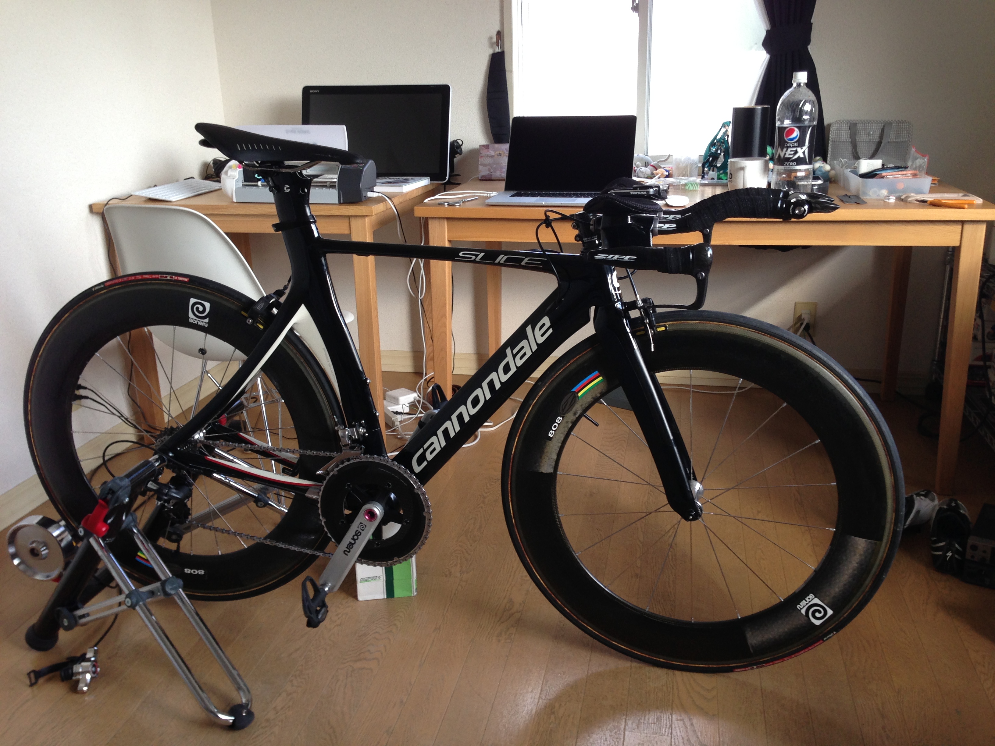 Cannondale Sliceの初めの状態。ZIPP808を装備。でも赤色がいまいち好みじゃないんだよね。