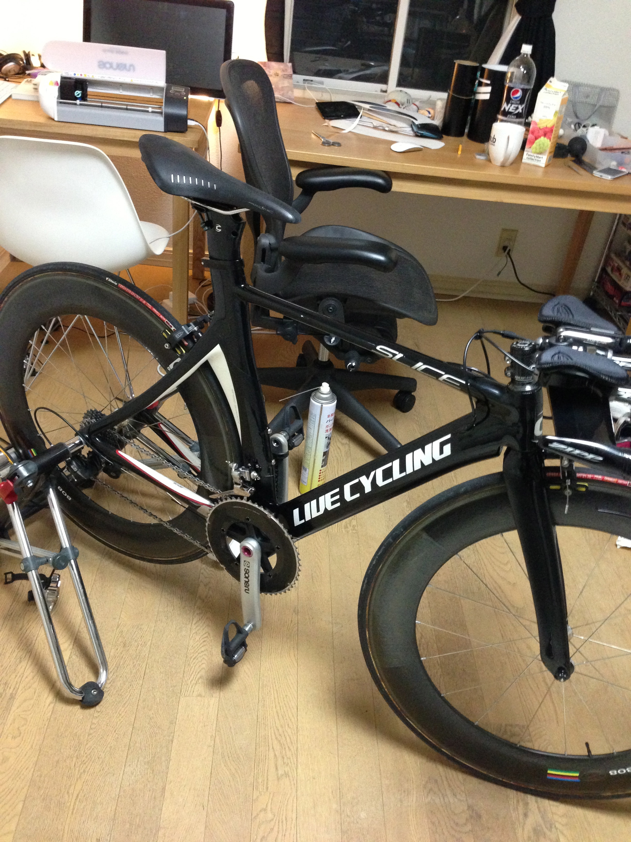を使って、カッティングシートを切って、自転車のカスタマイズ。