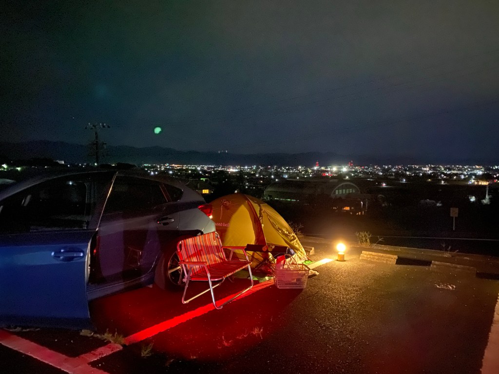 21時頃、久しぶりに夜だけキャンプに行こうと思って、大津谷公園へ向かいました。