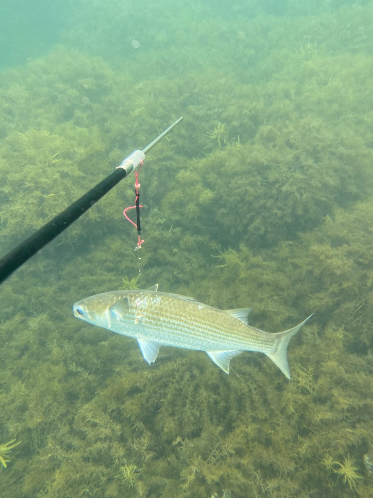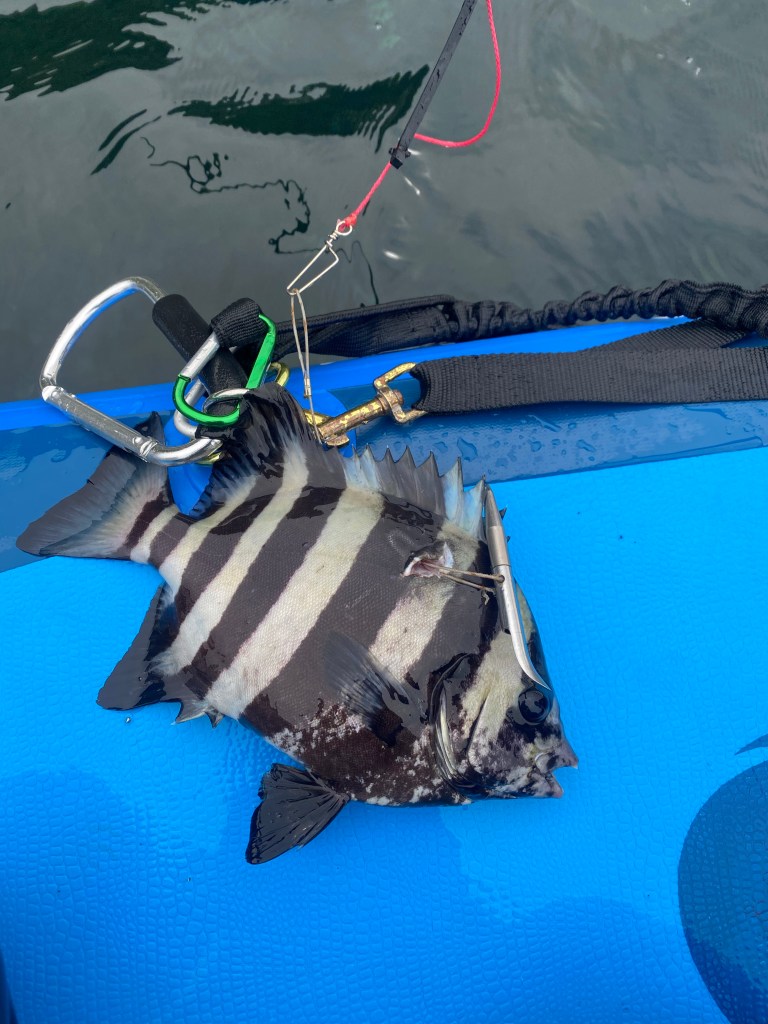 深いところはちょっとコワイので、浅い2m程度潜ってあたりでイシダイのちっこいやつをゲットです。