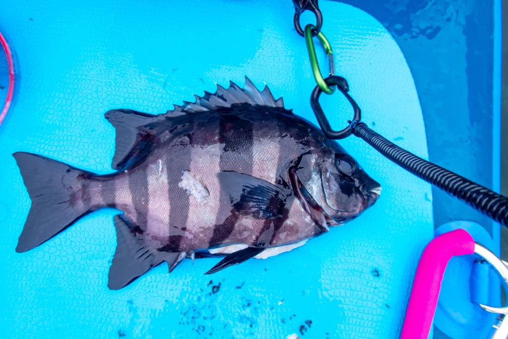 本日の獲物、メバルは水深1mくらいのところで、イシダイは水深2m程度のところでゲットしました。