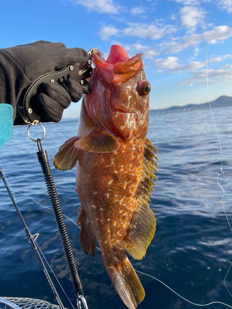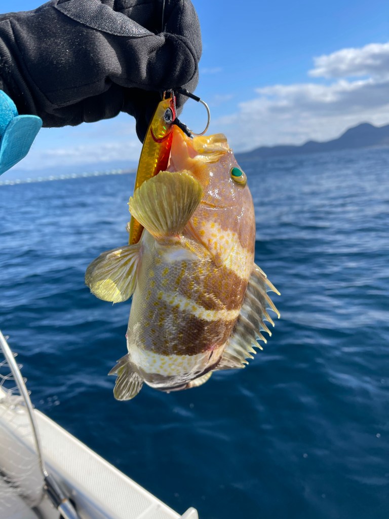 12時過ぎに、根がかりしたかな?なんか重いな?みたいな感じでアオハタが釣れました