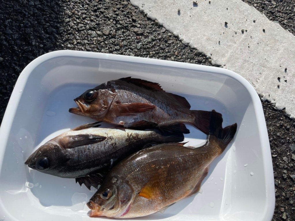 ちいこいメバル2匹とちいこいウミタナゴを1匹ゲットしました。