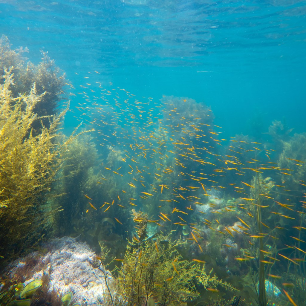 これは浜から15mくらいで水深も浅いあたりです。なんかよくわからない孵化したばっかりにみえる小魚がたくさんいました。