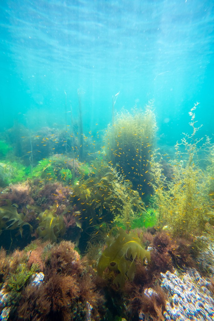 イシダイか黒鯛かどっちかを何匹か見かけるのと、メバルが岩の間にいるのをみかけます。