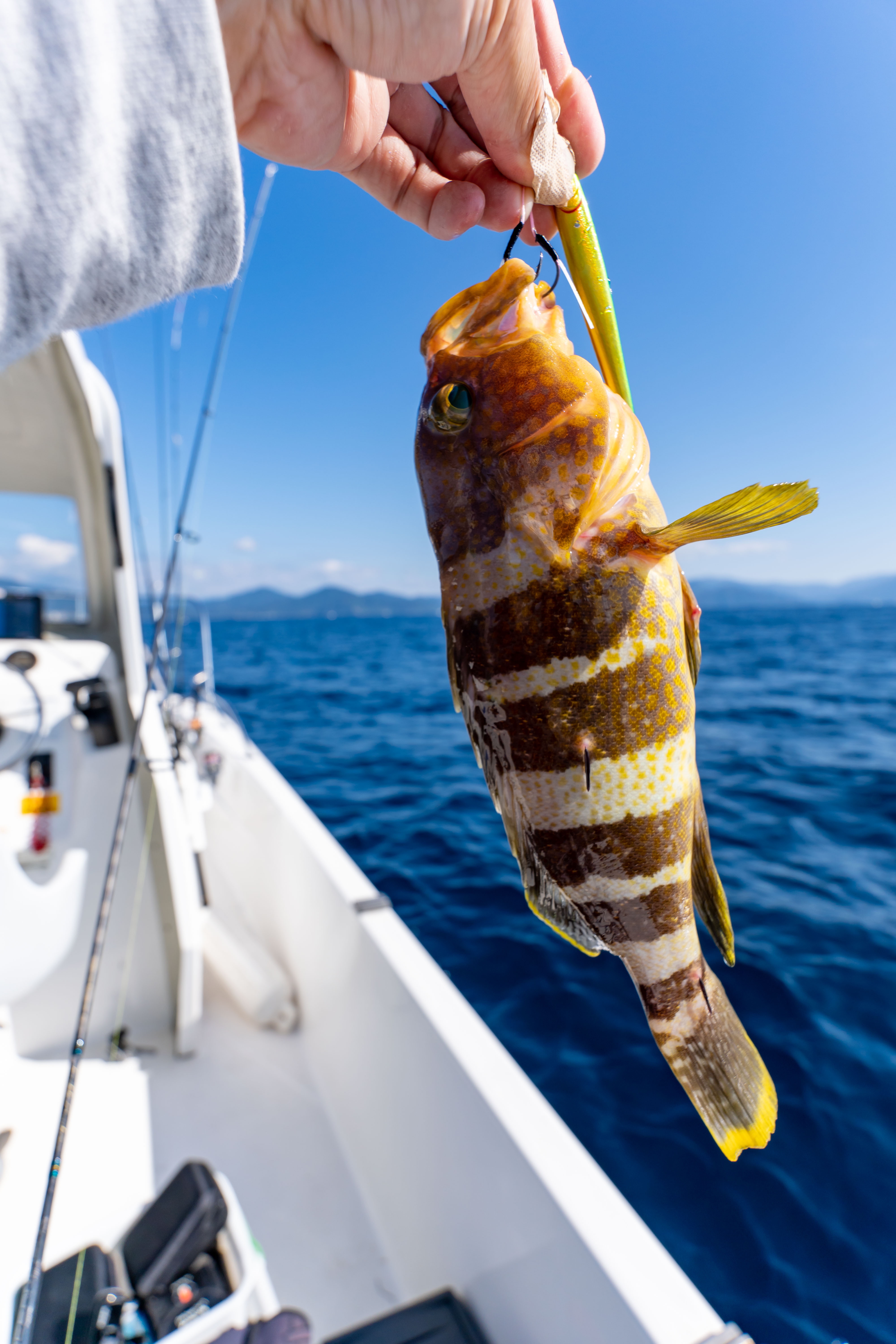 そのあとサビキ+タイラバでちいこいレンコダイを釣ったり、ちいこいアオハタをつったりします。