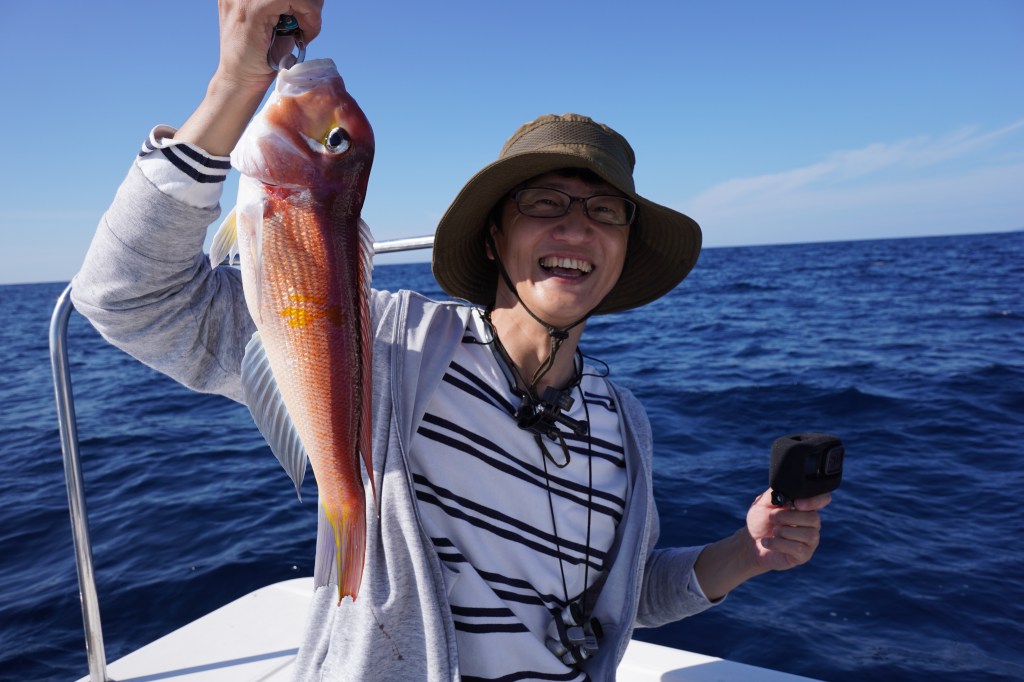 それでそろそろおしまいかぁというところで、本日の大物、アマダイを釣ります。