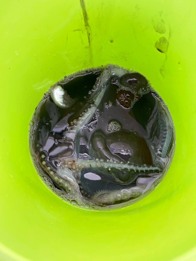 後ほど調べると、ムラサキダコ?かな?広がった状態で写真を撮らなかったので、泳ぐ姿は動画でご覧ください