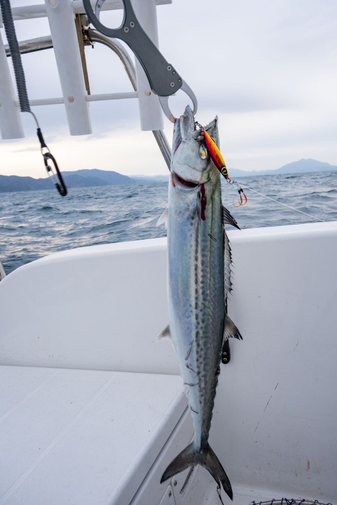 このあともう1匹サゴシを釣ったのですが、船縁でランディングに失敗してバラしました。残念・・・