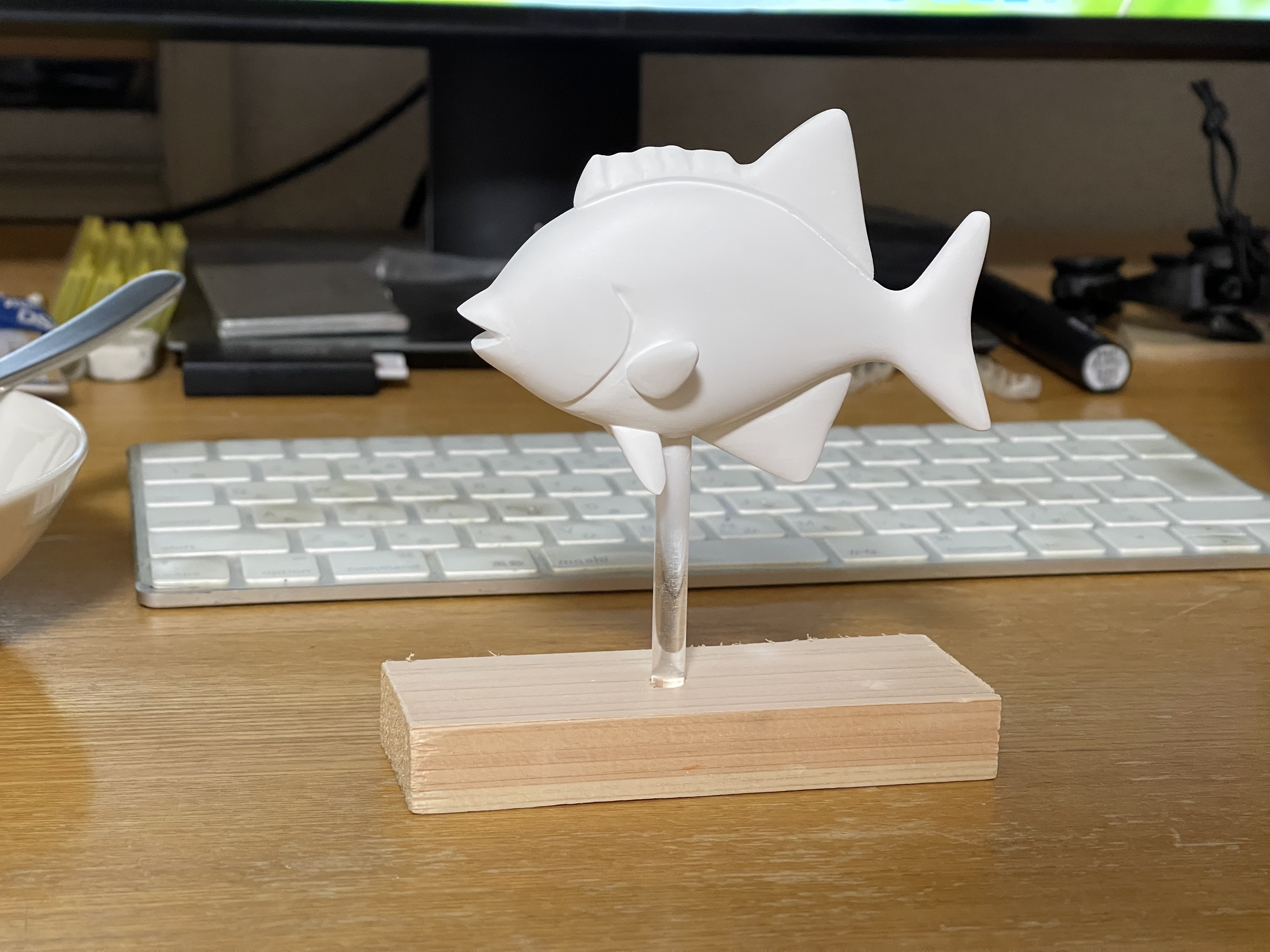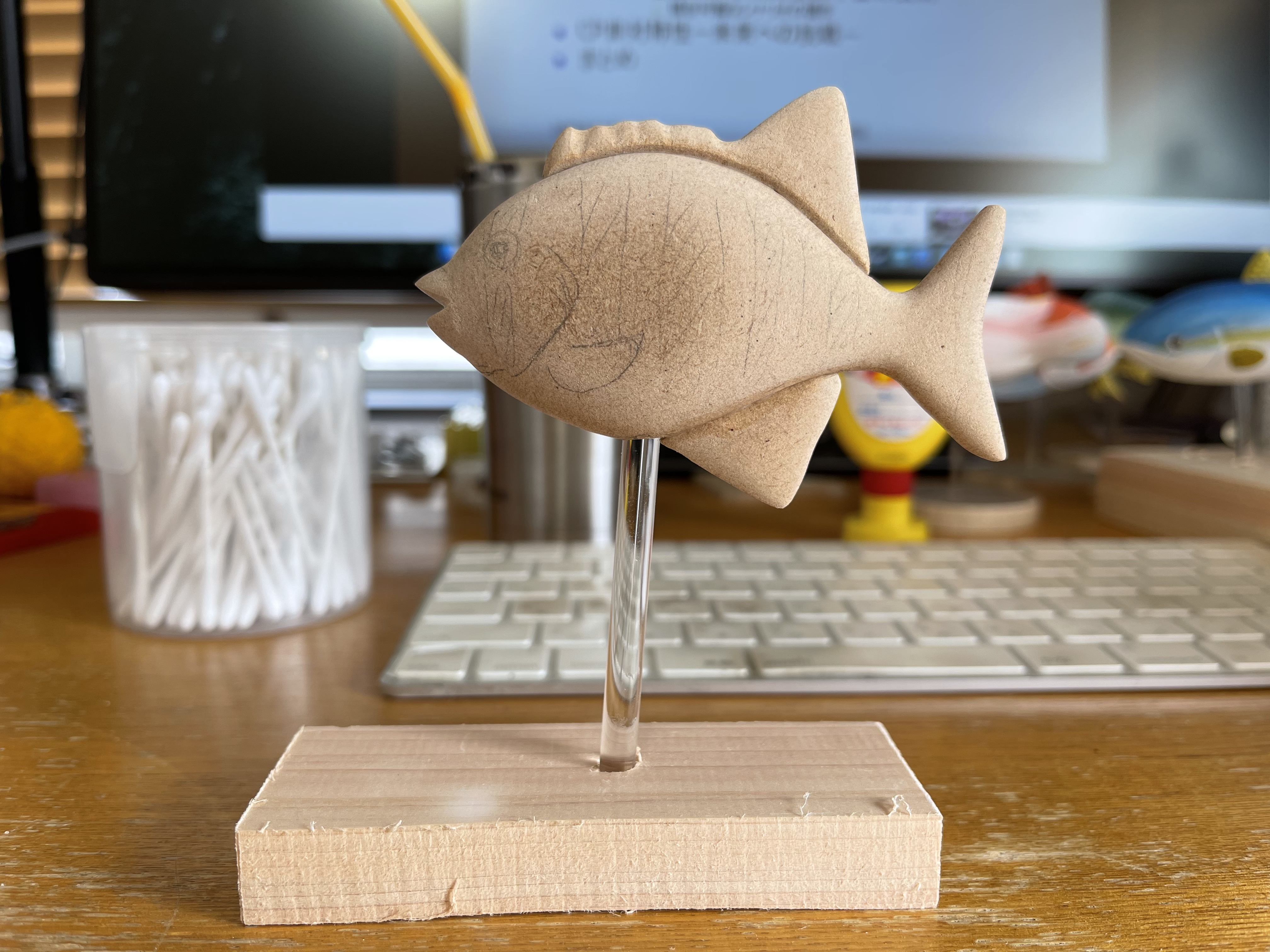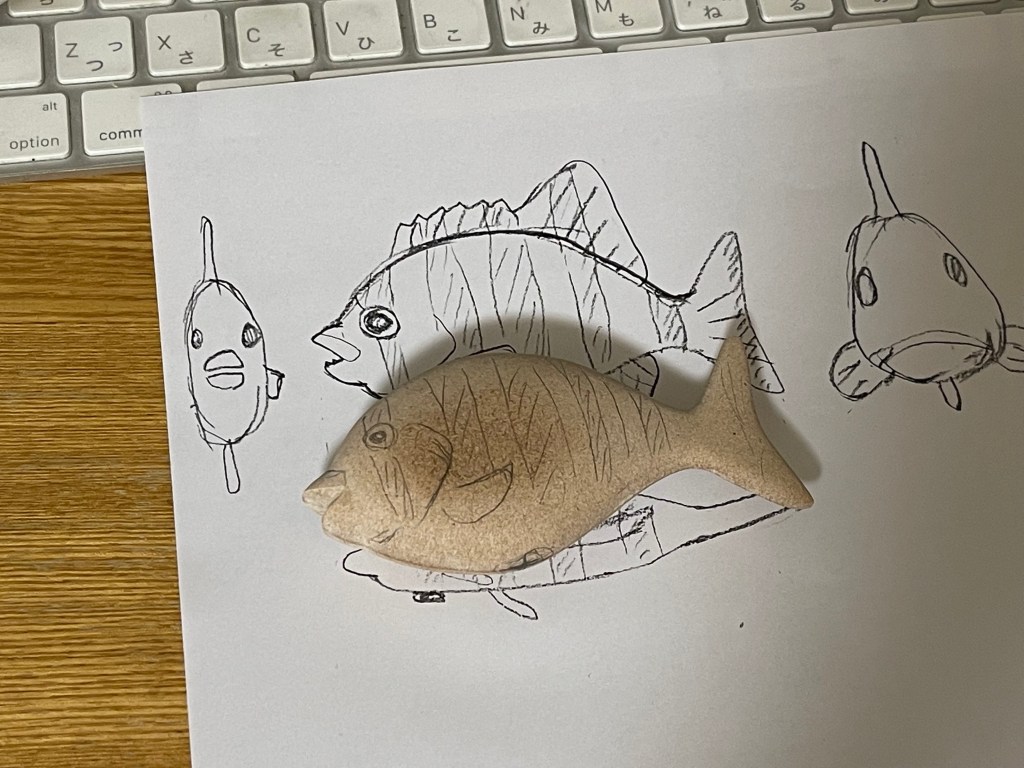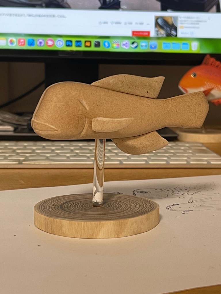 11月、大垣のクリエーターズマーケット行ったところ、魚の模型を作っている方がいらっしゃいました。とてもいい感じだったのでオオモンハタをゲットしました。
