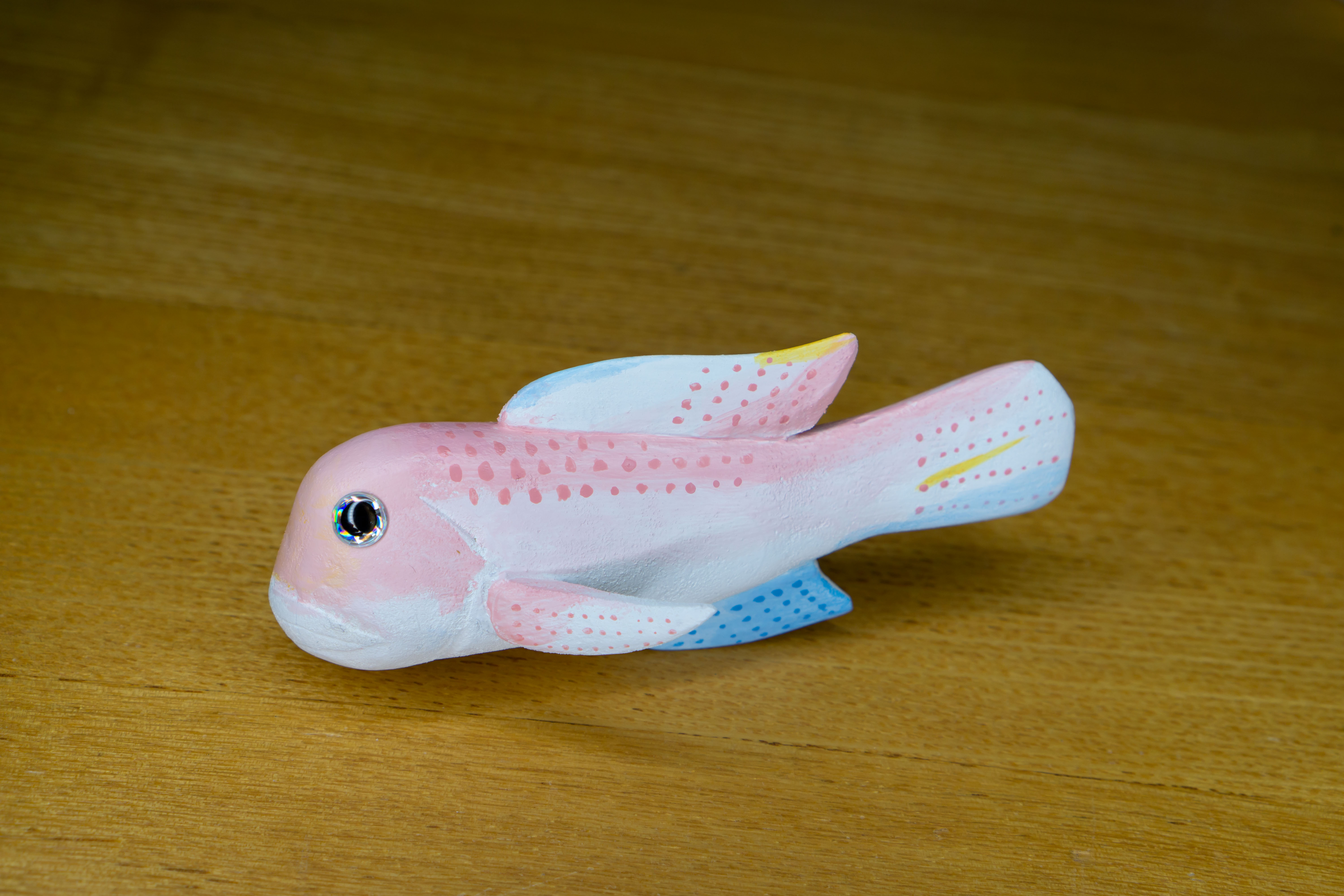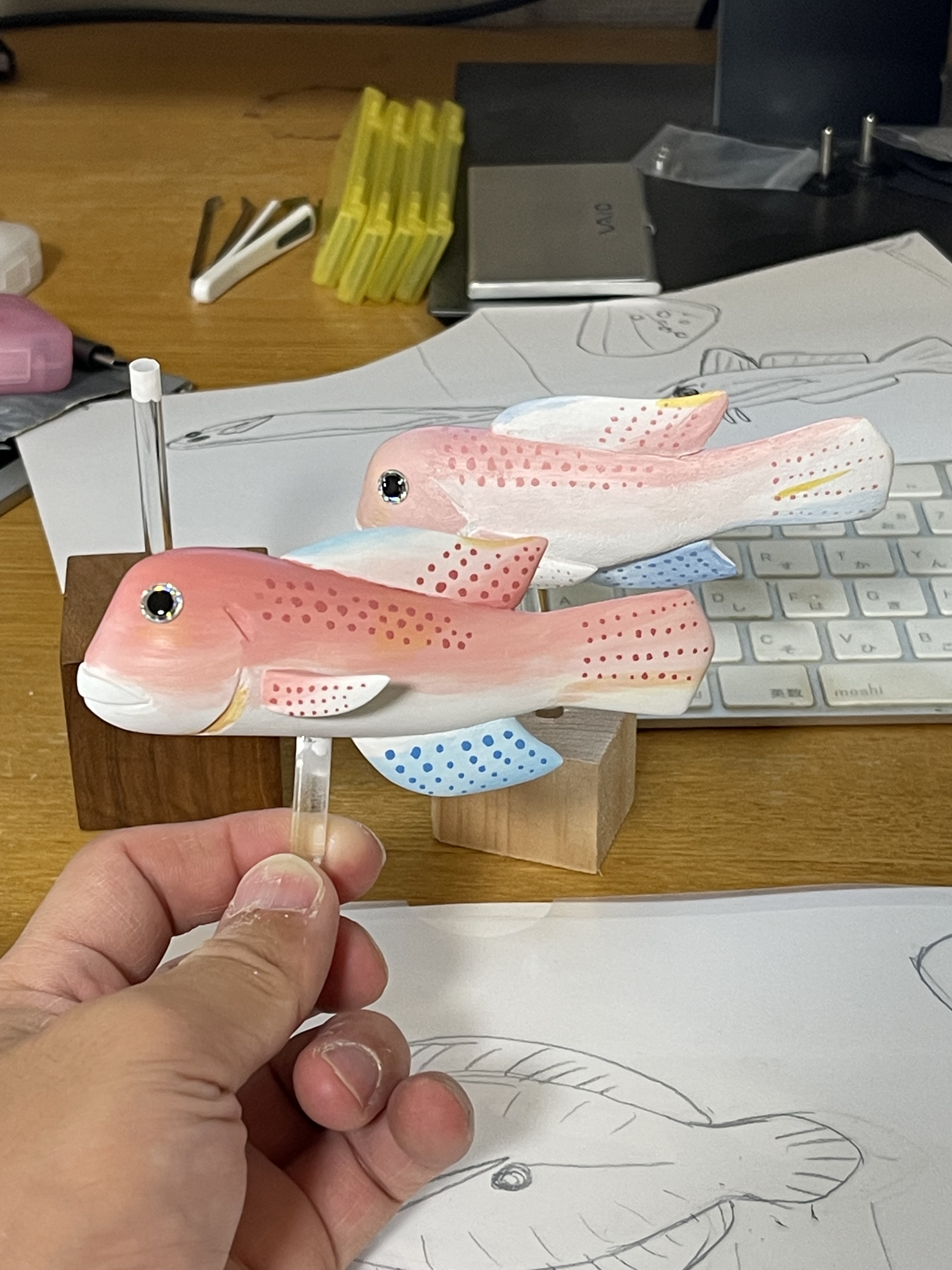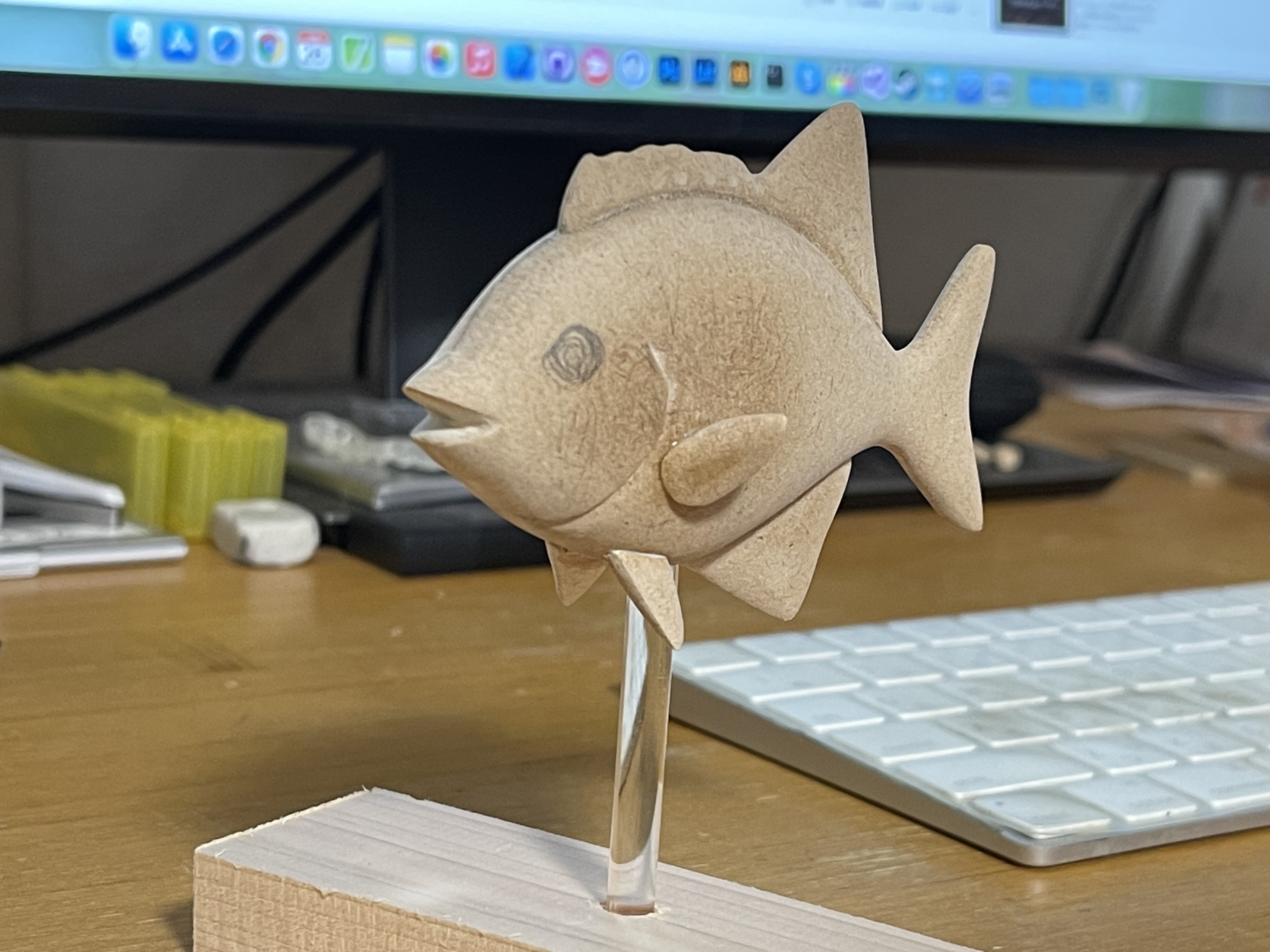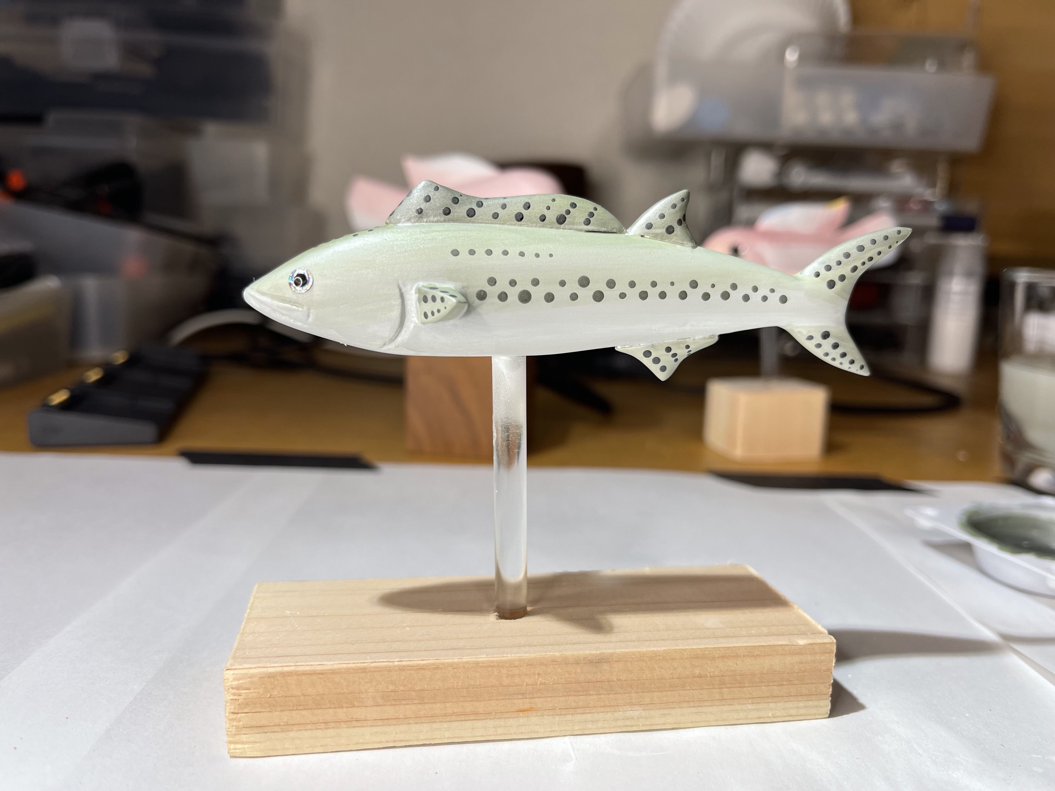 11月、大垣のクリエーターズマーケット行ったところ、魚の模型を作っている方がいらっしゃいました。とてもいい感じだったのでオオモンハタをゲットしました。