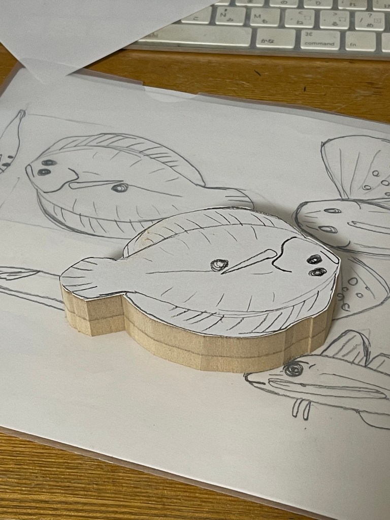 アマダイを作りたくなったので、コピー用紙に適当に三面図を書いて、それを縮小コピーしてMDFで作って見ることにします。