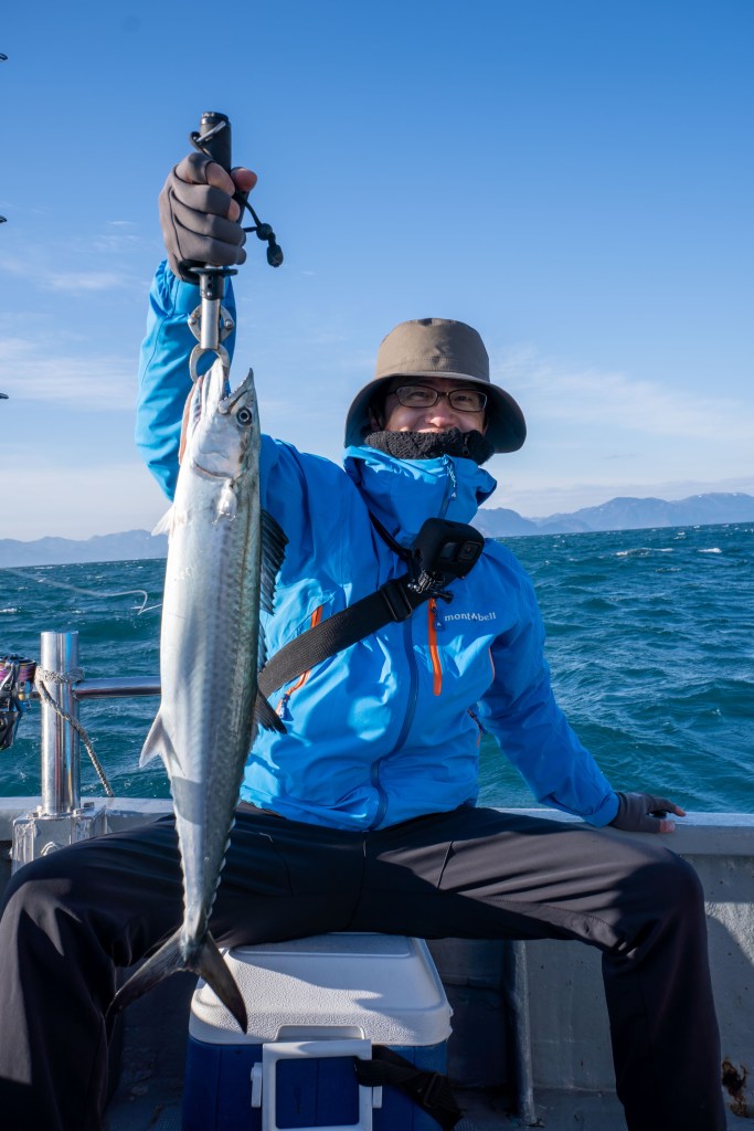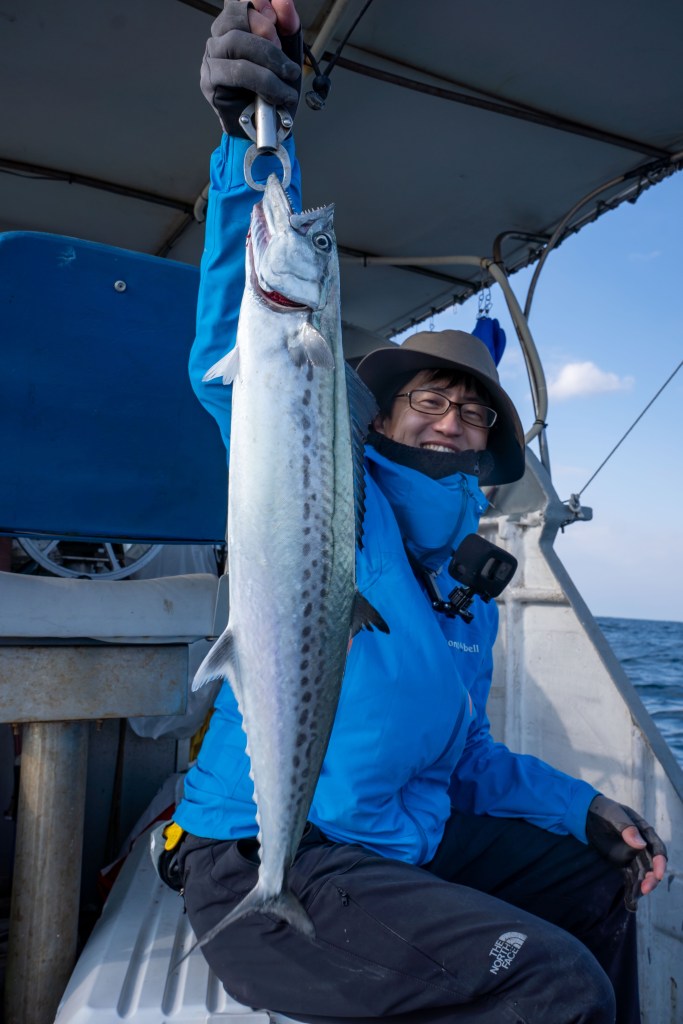 船の前の方でヒット!サワラです。