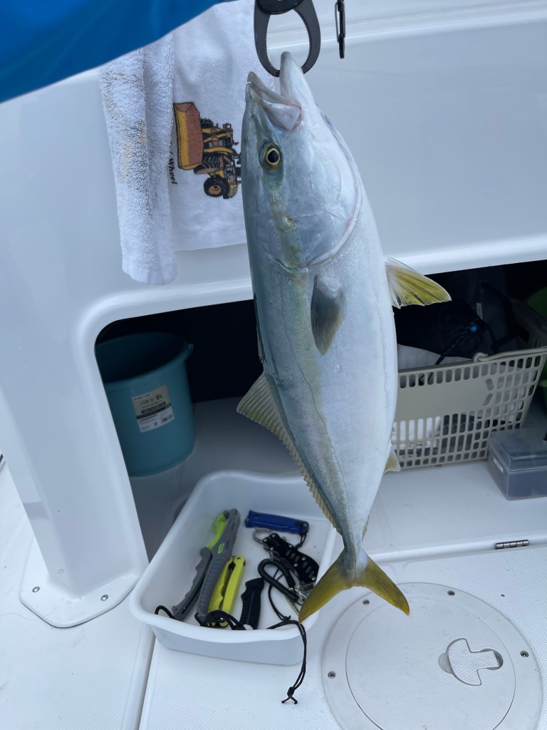 高手でもとりあえずタイラバサビキで、小物を釣ろうと考えていましたが、来ました。ハマチです。