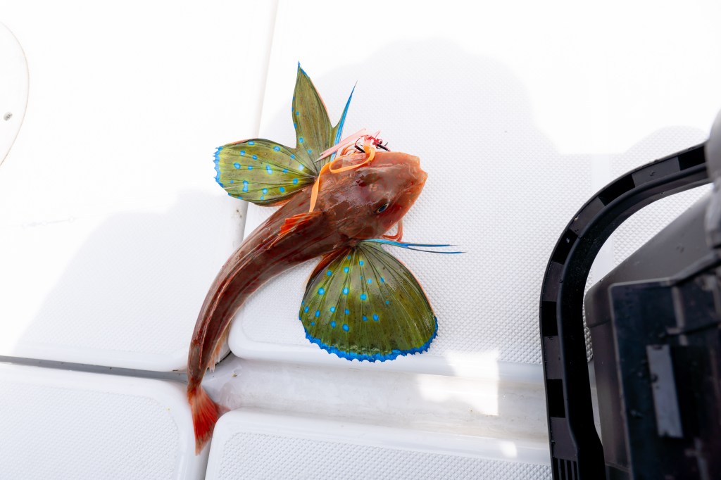 やっと何かが釣れた感じですが、むしろ草とかっぽい感じで、ホウボウゲット。