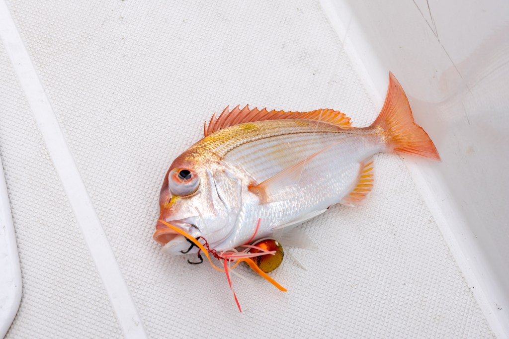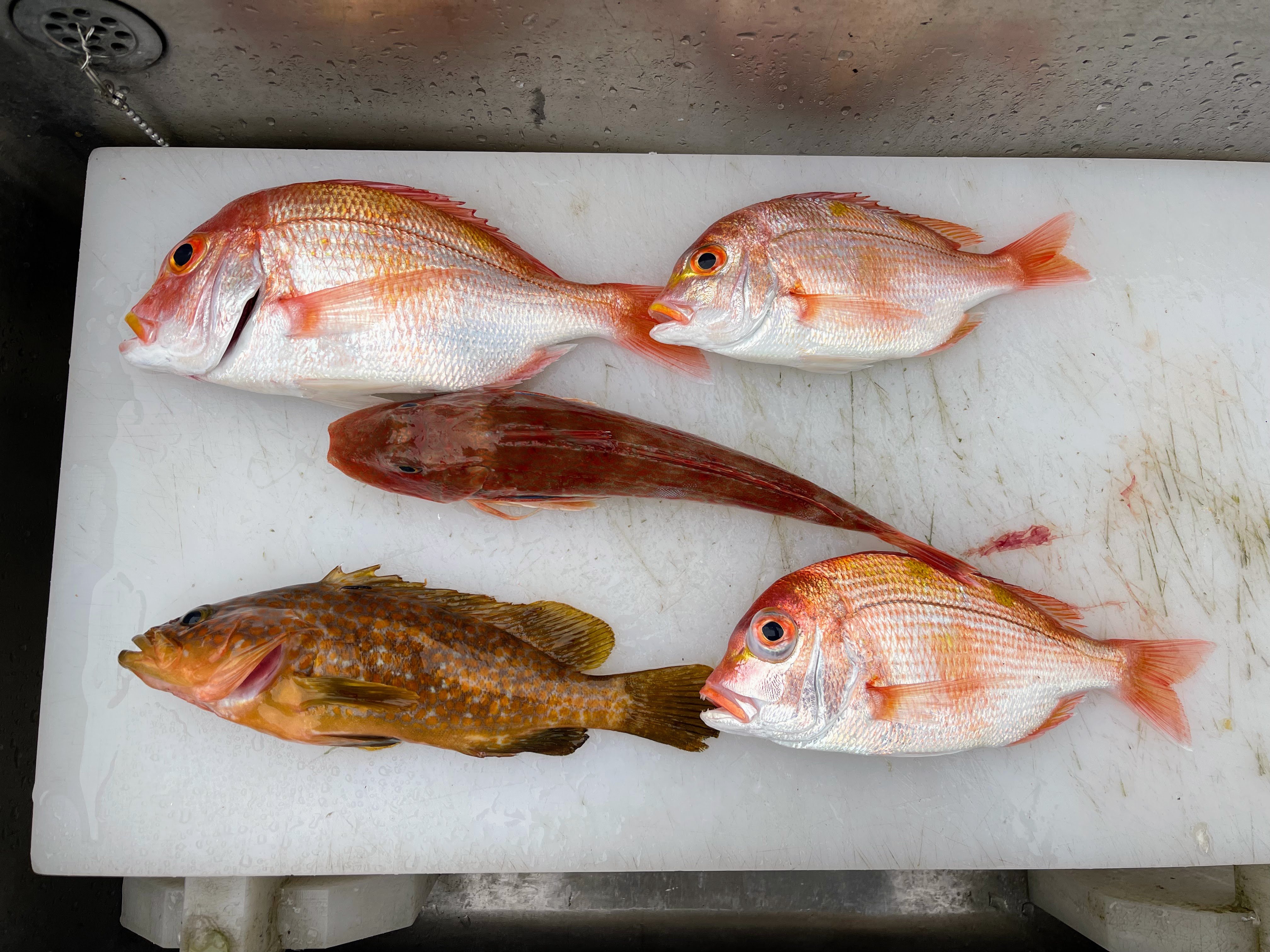 連子鯛釣れました。こいつもほとんど泳がない感じです。ホウボウよりは上で食ってきますが・・・