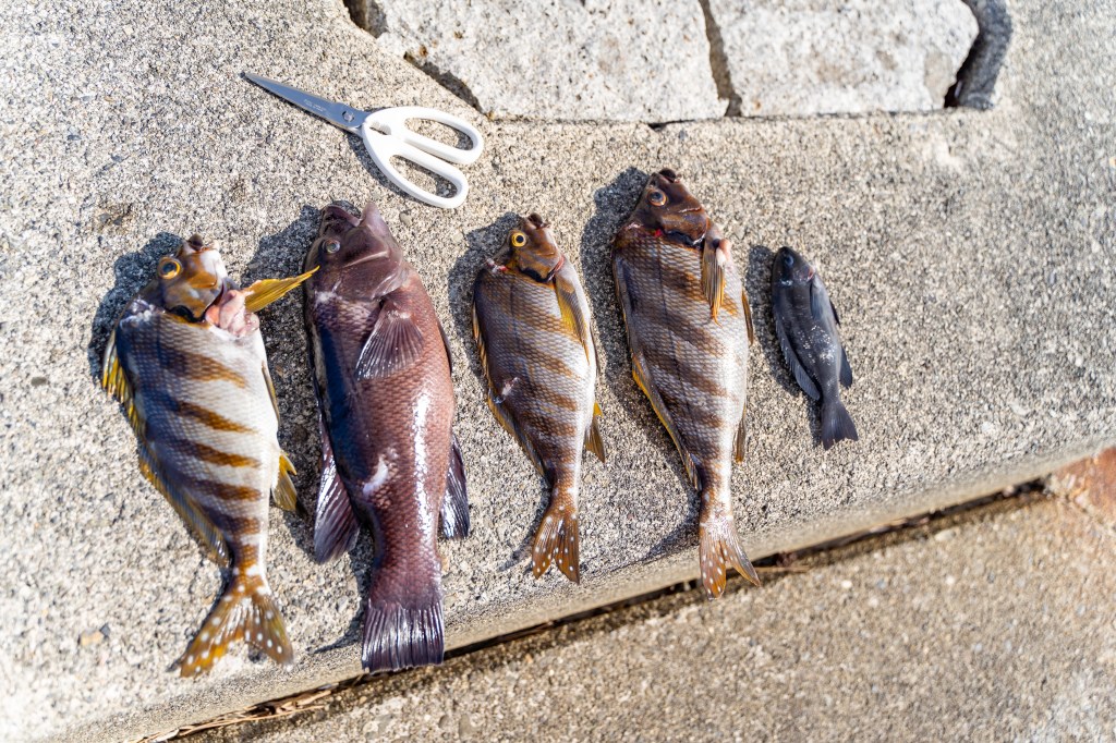 タカノハダイ3匹、コブダイ1匹、イスズミ1匹で帰ります。